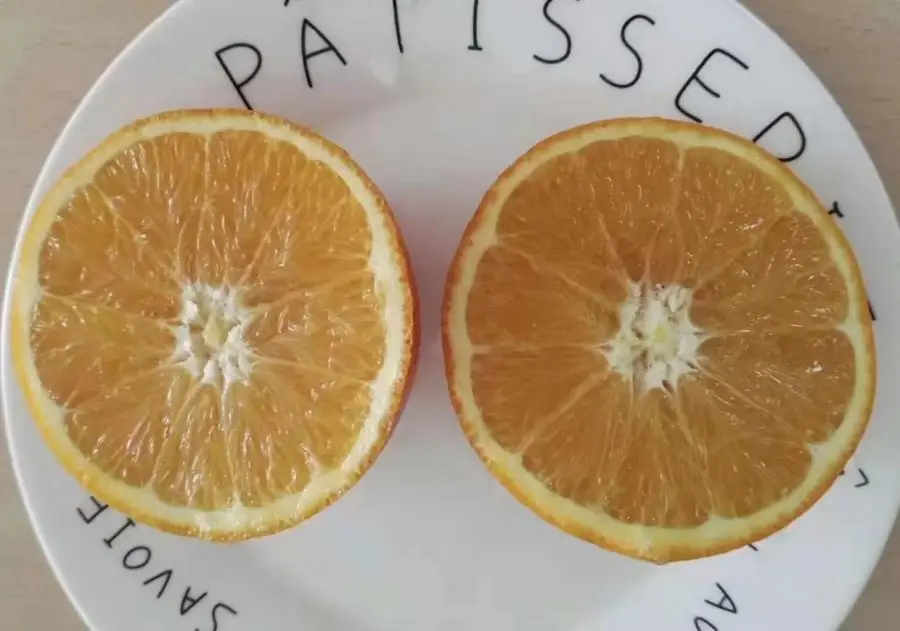 富川臍橙,是廣西富川瑤族特產(chǎn),也是中國國家地理標(biāo)志產(chǎn)品,以其色澤鮮艷,肉質(zhì)脆嫩、風(fēng)味濃郁、蜜甜、無核、化渣等著名。下圖就是微補(bǔ)技術(shù)顧問買了毛師傅的臍橙,切開后的樣子:皮薄、肉厚、汁多,中間沒有大窟窿,囊心緊密充實(shí)不干水,少渣。