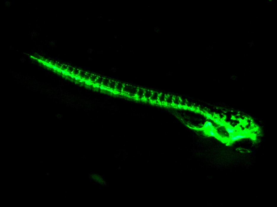 使用熒光蛋白對斑馬魚進(jìn)行標(biāo)記,使其在特定的組織器官中表達(dá),就可以實現(xiàn)通過熒光信號觀察到特定器官的發(fā)育與生理變化,甚至可以動態(tài)追蹤其胚胎發(fā)育全程以及外源性物質(zhì)或基因突變對器官發(fā)育的影響。如通過對血管系統(tǒng)、心臟、肝臟、淋巴系統(tǒng)等進(jìn)行熒光標(biāo)記觀測,可作為在血管生成、淋巴管生成、腫瘤形成、抗腫瘤藥物篩選與評價等領(lǐng)域應(yīng)用的重要依據(jù)。