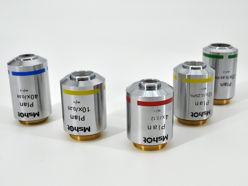 到固定筒長(zhǎng)末期和無(wú)限遠(yuǎn)光學(xué)時(shí)代,奧林巴斯和尼康終于實(shí)現(xiàn)在物鏡層面把橫向色差解決掉,稱為“獨(dú)立色差校正”,而蔡司和萊卡則沿用固定筒長(zhǎng)時(shí)代的策略,將補(bǔ)償橫向色差的任務(wù)交給了觀察頭底部的管透鏡和目鏡鏡,需使用跟物鏡配套的觀察頭才能消色差。明美物鏡采用的是獨(dú)立消色差設(shè)計(jì),更便于實(shí)現(xiàn)高質(zhì)量的顯微相機(jī)成像和定制產(chǎn)品開(kāi)發(fā)。