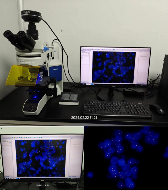 深圳某科研檢測公司需要開展對(duì)腫瘤的輔助診斷研究,需要用到熒光原位雜交技術(shù)(Fluorescence In Situ Hybridization, FISH). Mshot明美推薦了研究級(jí)熒光顯微鏡MF43-N搭配四通道光源MG-120,可以即開即用提供高質(zhì)量的熒光和明場成像,可以自主選擇和升級(jí)熒光激發(fā)塊,可對(duì)FISH樣品進(jìn)行單色熒光或雙色熒光觀察。搭配明美自主研發(fā)的FISH熒光原位雜交分析軟件,快速成像,自動(dòng)著色,一鍵合成多色熒光圖像,直觀地判斷最終的實(shí)驗(yàn)結(jié)果,功能強(qiáng)大,使用方便,效果得到客戶認(rèn)可。