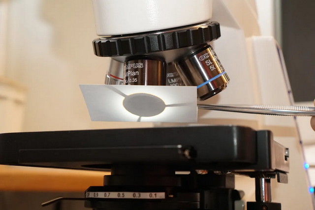簡易暗場觀察只需在阿貝聚光鏡基礎(chǔ)上加入暗場環(huán)即可實(shí)現(xiàn),這個(gè)暗場環(huán)通常安裝于聚光鏡底部,用推拉插板或者32mm濾光片托架安裝都可以,一般簡易暗場到N.A0.6效果都還行。也就是說最高搭配Plan 40X或者Plan Fluo 20X物鏡,更高N.A的物鏡可能需要在聚光鏡和玻片底部之間滴油來提升照明N.A.