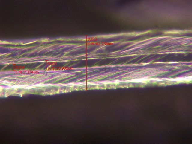 在一些孔隙率差異或折射率梯度的聚合物和陶瓷薄片,比如薄膜、光纖中,使用明場觀察會(huì)有邊緣模糊的問題,導(dǎo)致尺寸測量存在不準(zhǔn)確的問題,使用暗場觀察可以更準(zhǔn)確呈現(xiàn)邊緣,使尺寸測量更加準(zhǔn)確。