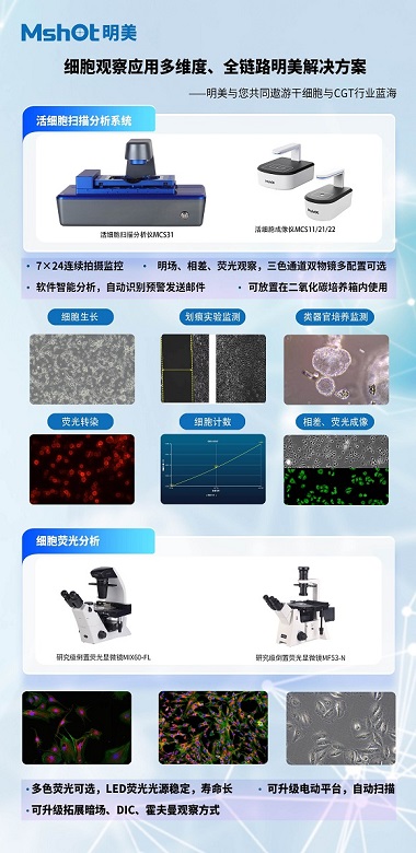 在這場生物領(lǐng)域的行業(yè)盛會上,明美光電展示的倒置熒光顯微鏡 MIX60 - FL、活細胞掃描分析儀 MCS31、活細胞成像儀 MCS22 等核心產(chǎn)品驚艷亮相,以創(chuàng)新技術(shù)賦能干細胞研究與生物醫(yī)藥發(fā)展,收獲行業(yè)專家、合作伙伴及觀眾的廣泛關(guān)注!