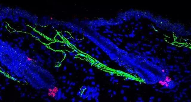 研究人員發(fā)現(xiàn),正是壓力激活了交感神經(jīng)系統(tǒng),產(chǎn)生了大量的去甲腎上腺素,促使黑素干細(xì)胞進入了快速的異常增殖狀態(tài)。在注射了樹脂毒素后的第三天,很多黑素干細(xì)胞就完成了增殖-分化-遷移到新生毛發(fā)中染色的過程,之后再長出的毛發(fā)就沒有黑素干細(xì)胞儲備了。