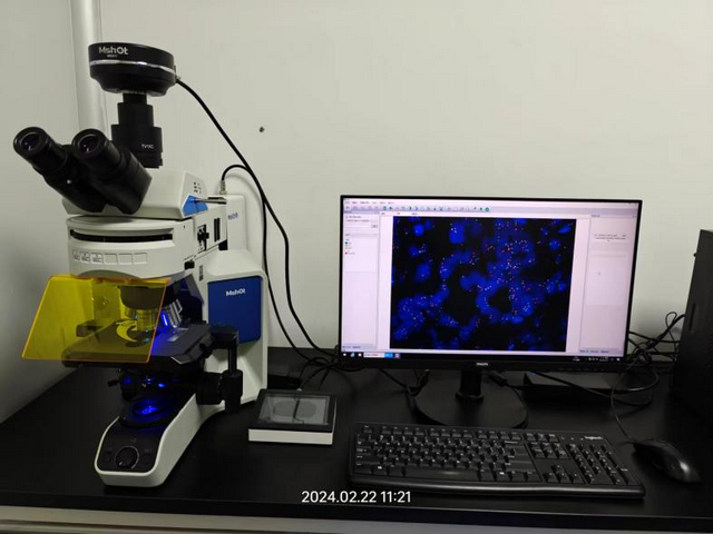 實(shí)驗(yàn)主要使用明美研究級(jí)顯微鏡MF43-N和FISH熒光原位雜交分析系統(tǒng)進(jìn)行,熒光顯微鏡用于熒光激發(fā)和放大FISH樣品的信號(hào)點(diǎn),F(xiàn)ISH熒光原位雜交分析系統(tǒng)可對(duì)熒光顯微圖像進(jìn)行捕捉和處理。